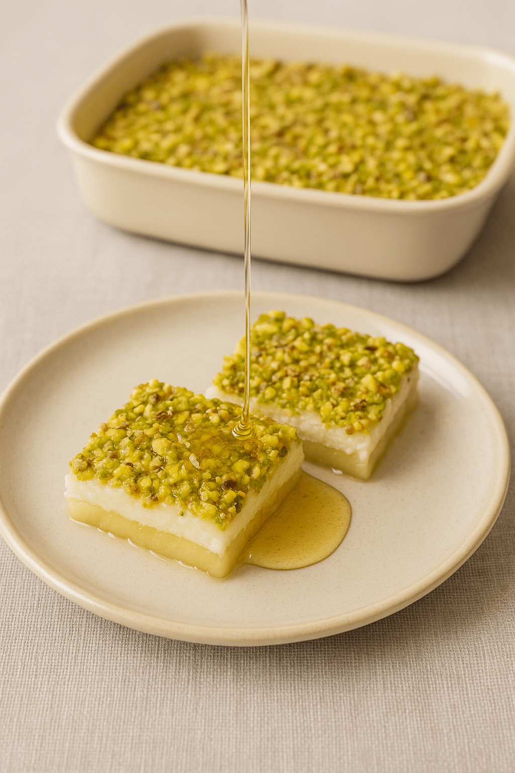 تتميّز هذه الحلوى بقوامها اللين قليلاً والمطاطي قليلاً وبنكهتها الغنية التي تجمع بين حلاوة القطر وطعم الجبنة المميز. وتُقدَّم عادةً كتحلية بعد الوجبات أو مع القهوة والشاي وتُعد من الحلويات السورية الأصيلة التي يعشقها الصغار والكبار على حد سواء.