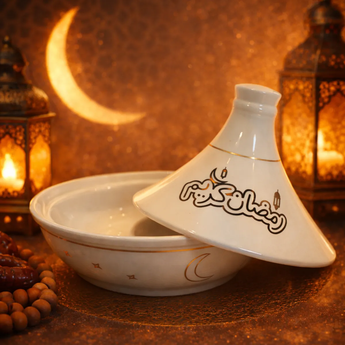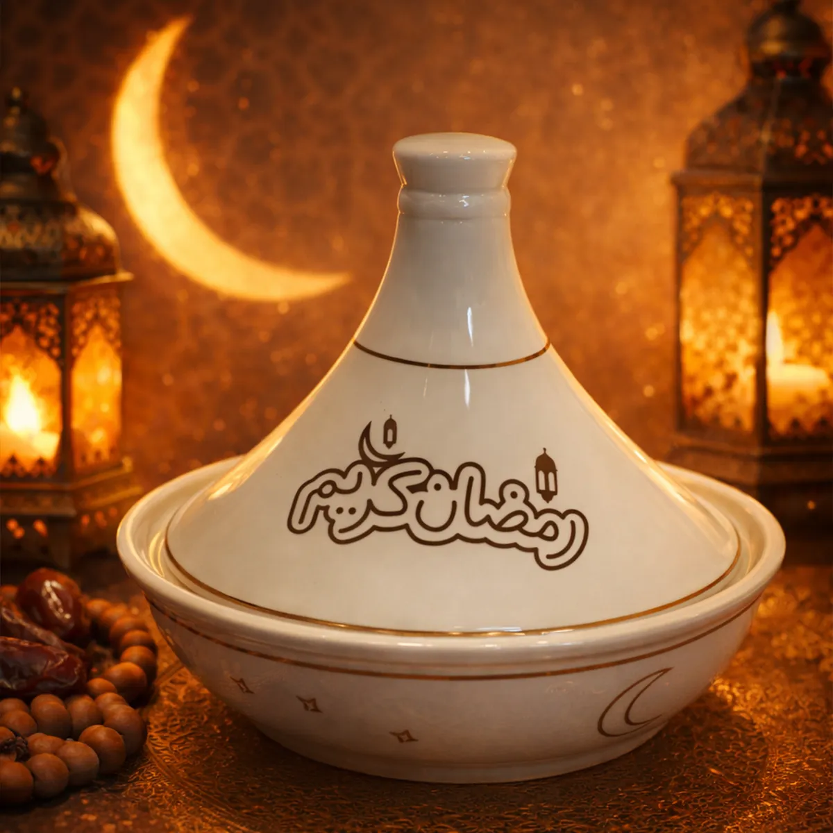 يتميز هذا الطاجين بتفاصيله الراقية التي تجمع بين الوظيفة والجمال، ليكون قطعة تقديم عملية وديكورًا رمضانيًا مميزًا في الوقت نفسه.