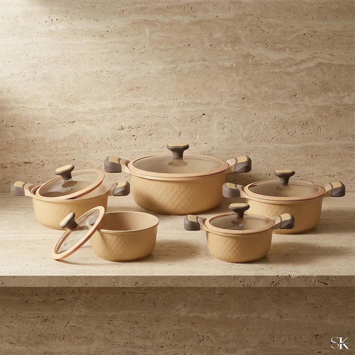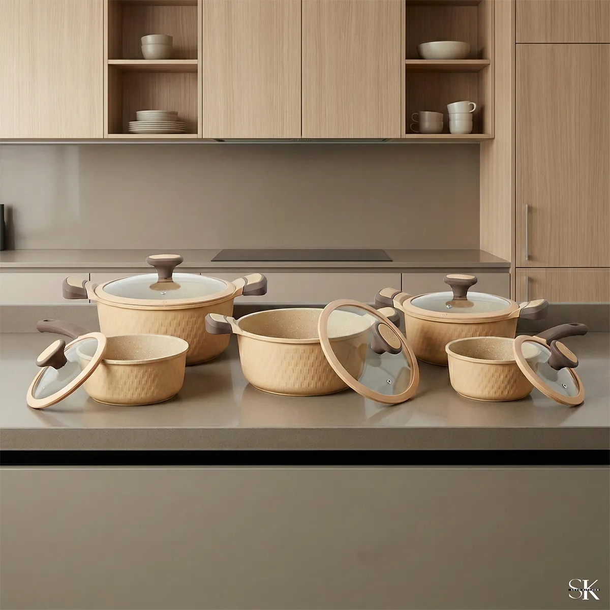 طقم طناجر غرانيت غلوي هو طقم متكامل مكوّن من خمس قطع عالية الجودة، صُمم ليمنحك طهيًا متساويًا ومريحًا بفضل توزيع الحرارة الممتاز الذي يوفره الجرانيت المتين.