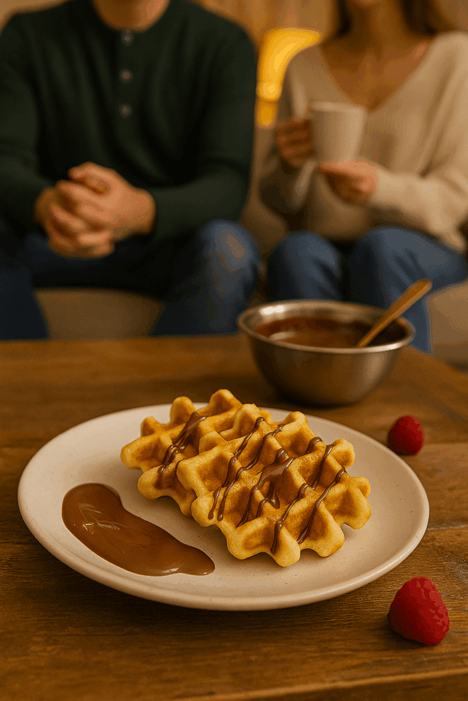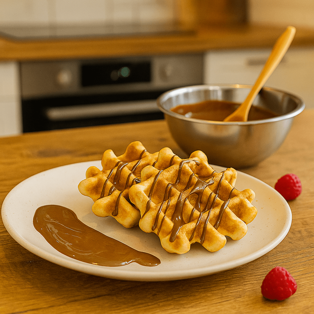 Pour the batter and cook until the waffle turns golden and crisp at the edges.