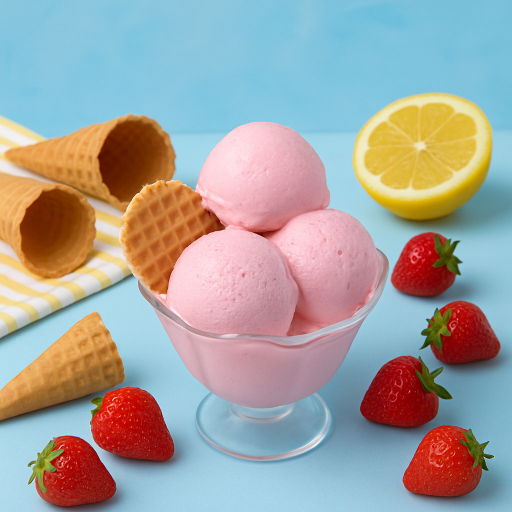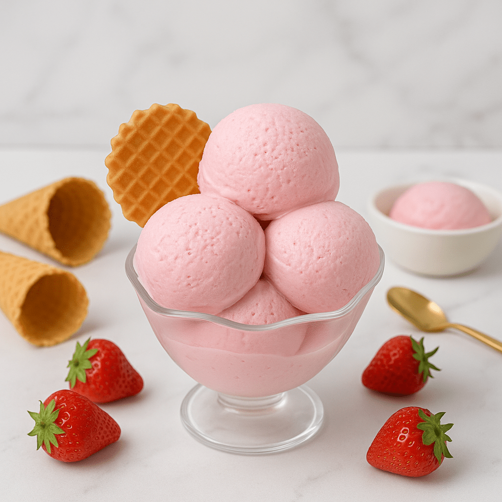 Add the blended strawberries to the cream mixture and fold gently until the ice cream base is fully incorporated.