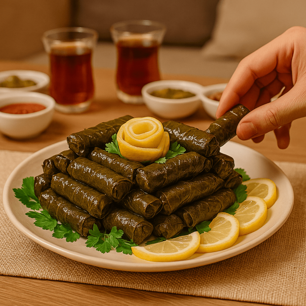 Roll the grape leaves, keeping the filling moderately packed.